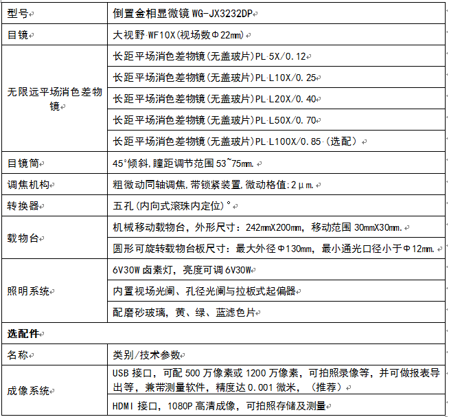 倒置金相顯微鏡WG-JX3232DP類別:倒置金相顯微鏡